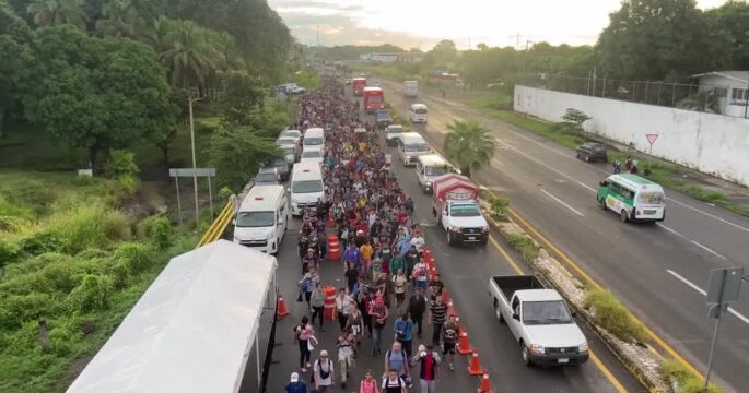 คาราวานผู้อพยพย้ายถิ่นจากอเมริกาใต้และอเมริกากลางเร่งเดินเท้าจากทางตอนใต้ของเม็กซิโกขึ้นไปทางเหนือเพื่อให้ถึงชายแดนสหรัฐให้เร็วที่สุด