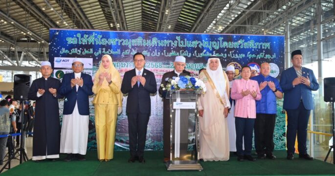 สุวรรณภูมิ 27 พ.ค.-“อนุทิน” เป็นประธานอำนวยพรผู้เดินทางไปประกอบพิธีฮัจย์ ประจำปี 2568 พร้อมอำนวยพรให้ผู้แสวงบุญได้ประกอบพิธีฮัจย์ได้สมบูรณ์ตามหลักศาสนา นายอนุทิน ชาญวีรกูล รองนายกรัฐมนตรีและรมว.มหาดไทยเป็นประธานพิธีอำนวยพรผู้เดินทางไปประกอบพิธีฮัจย์ โดยมี น.ส.ซาบีดา ไทยเศรษฐ์ รมช.มหาดไทย นายอับดุรเราะห์มาน อับดุลอะซีซ อัลซุฮัยบานี (H.E. Mr. Abdulrahman Abdulaziz Alsuhaibani) เอกอัครราชทูตซาอุดีอาระเบียประจำประเทศไทย นายอรรษิษฐ์ สัมพันธรัตน์ ปลัดกระทรวงมหาดไทย นายไชยวัฒน์ จุนถิระพงศ์ อธิบดีกรมการปกครอง นายศุภมิตร ชิณศรี ผู้ว่าราชการจังหวัดสมุทรปราการ นายกิตติพงศ์ กิตติขจร ผู้อำนวยการท่าอากาศยานสุวรรณภูมิ ผศ.ดร.อับดุลเลาะห์ หนุ่มสุข ผู้แทนจุฬาราชนตรี ผู้แทนกรรมการอิสลามประจำกรุงเทพมหานคร หน่วยงานที่เกี่ยวข้อง และผู้แสวงบุญ ร่วมพิธี ณ อาคารผู้โดยสารขาออก ชั้น 4 ประตู 8 ท่าอากาศยานนานาชาติสุวรรมภูมิ อ.บางพลี จ.สมุทรปราการ โดยในพิธี อ.ปริญญา (อับดุลนาซิร) ก้อพิทักษ์ […]