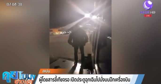 ชายคนหนึ่งทำผู้โดยสารคนอื่นๆ ถึงกับอึ้ง หลังอดทนรอเที่ยวบินล่าช้าในวันปีใหม่ไม่ไหว เปิดประตูฉุกเฉินแล้วไปนั่งบนปีกเครื่องบินพร้อมกระเป๋าสัมภาระ ตั้งท่าจะกระโดดลงไป สุดท้ายถูกควบคุมตัวตามระเบียบ