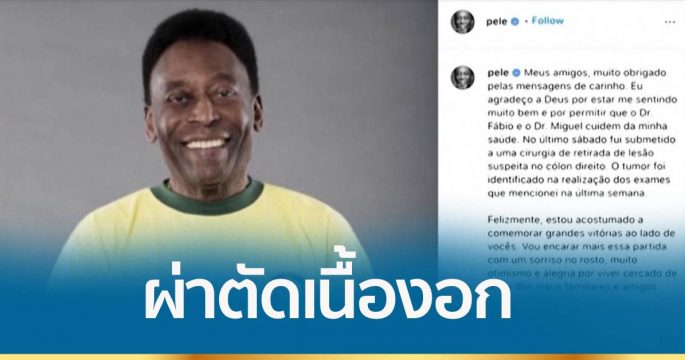 เปเล่ อดีตตำนานนักฟุตบอลระดับโลกชาวบราซิลวัย 80 ปี ได้เข้ารับการผ่าตัดเนื้องอกในลำไส้ใหญ่