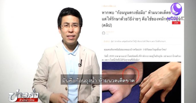 บนสังคมออนไลน์แชร์ว่าหากใครมีก้อนถุงน้ำที่ข้อมือ ให้ใช้ของหนักทุบให้ยุบเองได้ เรื่องนี้จริงหรือไม่ ติดตามจากศูนย์ชัวร์ก่อนแชร์