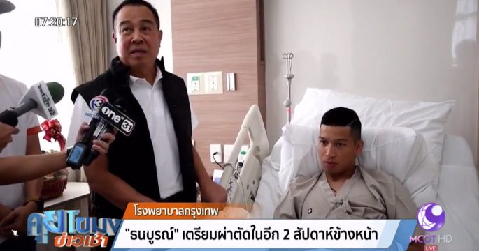 ตั้ม-ธนบูรณ์ กองกลางทีมชาติไทยของสโมสรเชียงราย ยูไนเต็ด ขอบคุณกำลังใจจากแฟนบอลหลังเจ็บหนักที่เข่าซ้าย ต้องพักยาวมากกว่า 7-8 เดือน และจะผ่าตัดในอีก 2 สัปดาห์หน้า