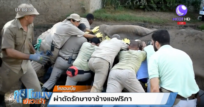 ช้างป่าแอฟริกันน้ำหนัก 5 ตันจากสวนสัตว์บาร์รันกีล่าของโคลอมเบียได้รับการผ่าตัดโพรงงาข้างหนึ่งซึ่งติดเชื้อต้องใช้สัตวแพทย์ นักชีววิทยาและเจ้าหน้าที่สวนสัตว์กว่า 30 คน