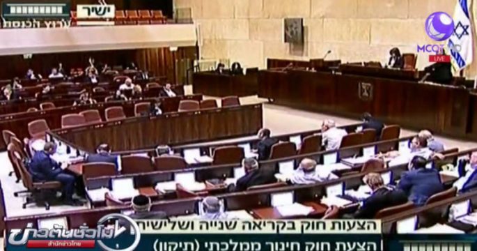รัฐสภาอิสราเอลลงมติเห็นชอบร่างกฎหมายห้ามกลุ่มที่วิพากษ์วิจารณ์นโยบายปาเลสไตน์ของรัฐบาลเข้าพื้นที่โรงเรียน