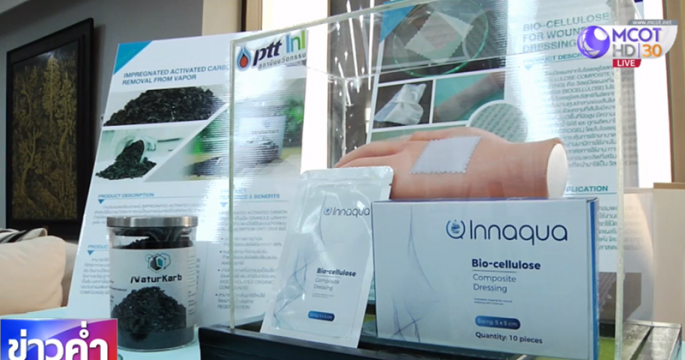 ผ้าปิดแผลจากไบโอเซลลูโลส เป็นอีกหนึ่งนวัตกรรมที่ ปตท.ประสบความสำเร็จในการพัฒนา จะออกจำหน่ายในปีหน้า และมีอีกหลายนวัตกรรมที่คิดค้น ติดตามจากรายงาน