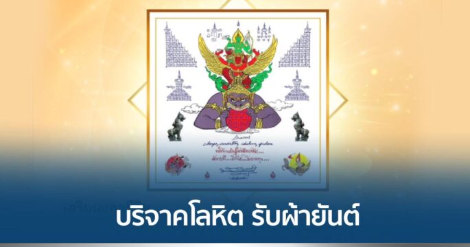 สมเด็จธงชัย วัดไตรมิตร จัดทำผ้ายันต์พระนารายณ์ทรงครุฑประทับบนพระราหู ศูนย์บริการโลหิตแห่งชาติ เพื่อมอบให้ผู้บริจาคโลหิตทั่วประเทศ เป็นของขวัญปีใหม่ไทย เสริมมงคลชีวิต