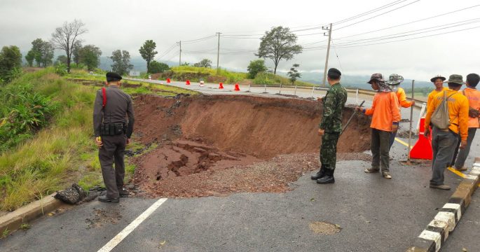 น่านฝนตกหนัก ถนนทรุด ห้ามรถผ่าน