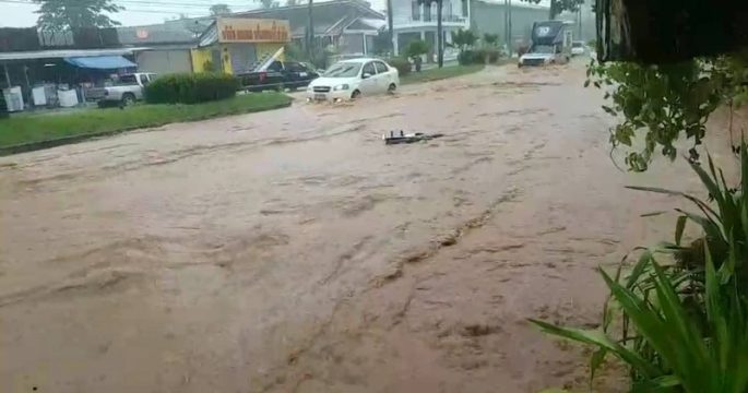 ฝนถล่มตัวเมืองกระบี่ท่วมถนนหลายสาย