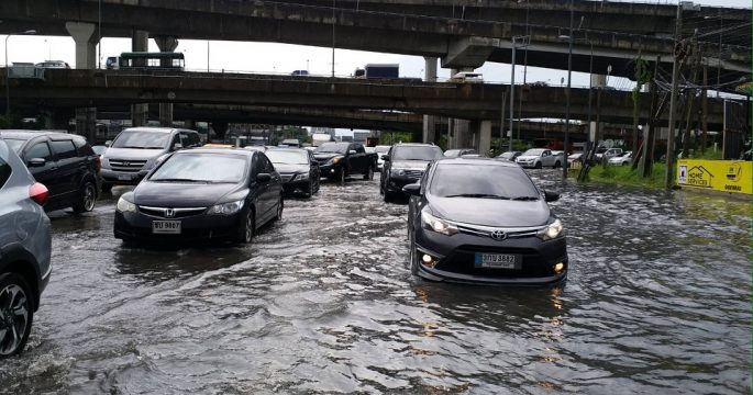 ฝนถล่มนนทบุรีนับชั่วโมง แคราย-ปากเกร็ดท่วม รถติด