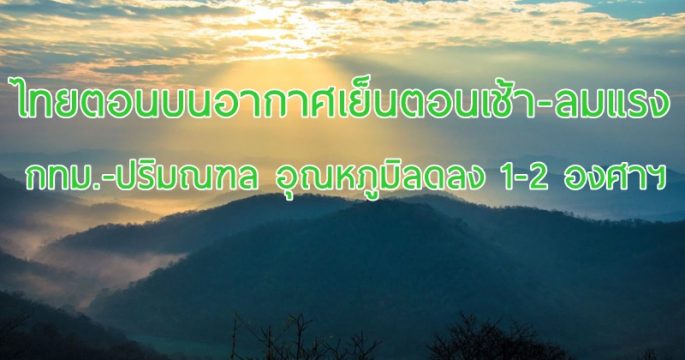 กรมอุตุฯ เผยไทยตอนบนอากาศเย็นในตอนเช้า ลมแรง อุณหภูมิจะลดลง 2-4 องศาฯ สำหรับภาคใต้มีฝนตกต่อเนื่องและมีฝนตกหนักบางแห่ง
