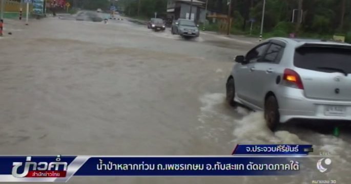 สถานการณ์น้ำท่วมในพื้นที่ 8 จังหวัดภาคใต้กลับวิกฤติอีกครั้ง หลังหลายพื้นที่เกิดฝนตกลงมาอย่างหนักเมื่อคืนที่ผ่านมา ที่ประจวบคีรีขันธ์ฝนตกหนัก น้ำป่าหลากท่วมถนนเพชรเกษม เส้นทางลงใต้เป็นอัมพาต