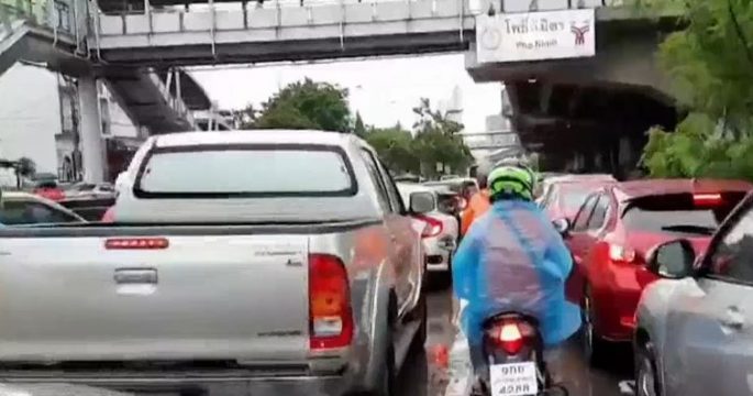 เกิดฝนตกหนักหลายพื้นที่ของกรุงเทพฯ ทำรถติด น้ำท่วมขังหลายเส้นทาง