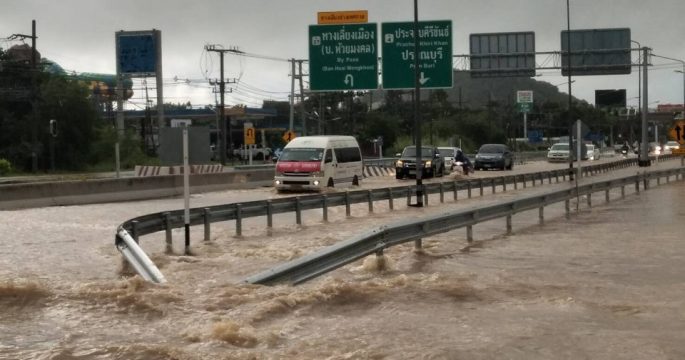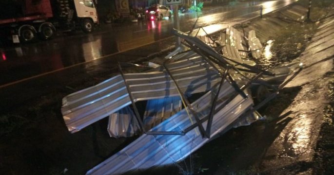 ฝนกระหน่ำประจวบฯ หอบซุ้มร้านค้าปลิวอยู่ถนนเพชรเกษม