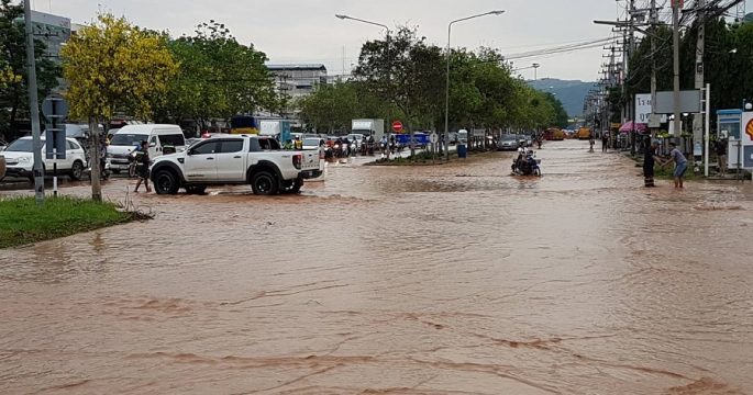 นครราชสีมา 10 ต.ค.- โคราชฝนตกสะสมน้ำป่าเขาใหญ่หลากท่วมย่านเศรษฐกิจอำเภอปากช่องเมื่อคืนนี้ หลายหน่วยงานเร่งดูแลช่วยเหลือ นายอำเภอ “สุรพันธ์” ระบุหากไม่มีน้ำเขาใหญ่มาอีก คาด 1-2 วัน ตัวเมืองปากช่องจะเป็นปกติ สถานการณ์น้ำป่าเขตอุทยานแห่งชาติเขาใหญ่ไหลหลากจากฝนตกต่อเนื่องตั้งแต่วันที่ 7 ต.ค.ที่ผ่านมา และน้ำยังไหลมาตามลำตะคองจนล้นตลิ่งท่วมเป็นบริเวณกว้าง 7 ตำบล อ.ปากช่อง จ.นครราชสีมา รวมถึงเขตเทศบาลเมืองปากช่อง ซึ่งเป็นพื้นที่เศรษฐกิจถูกน้ำท่วมเมื่อคืนที่ผ่านมา ระดับน้ำประมาณ 50 ซม.-1 เมตร มีพื้นที่ได้รับผลกระทบ 4 ชุมชน ได้แก่ ชุมชนราชประชา ชุมชนสะพานดำ ชุมชนโรงสูบชุมชนประปา ประมาณ 200 ครัวเรือน และถนนมิตรภาพสายเก่า (หนองสาหร่าย – ปากช่อง) รถเล็กสัญจรไม่ได้ ส่วนตลาดปากช่อง ที่ว่าการอำเภอ สถานีตำรวจ และสำนักงานเทศบาลเมืองปากช่อง วัด และรีสอร์ท น้ำท่วมสูง นอกจากนี้ ปริมาณน้ำยังได้ไหลเข้าท่วม ต.หนองสาหร่าย และ ต.จันทึก ก่อนไหลลงอ่างเก็บน้ำลำตะคอง ขณะที่อำเภอปากช่องร่วมกับหลายหน่วยงานจัดเจ้าหน้าที่ดูแลประชาชนอย่างเต็มที่ […]