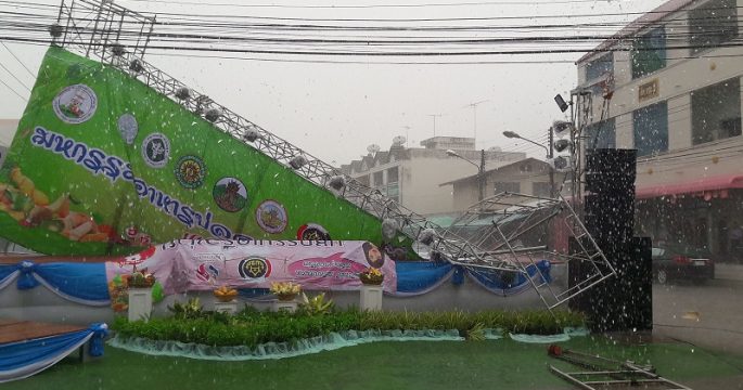 ลมฝนกระโชกแรงพิธีเปิดงานมหกรรมอาหารปลอดภัยชาวอุทัยผาสุก เทศบาลเมืองอุทัยธานี เวทีงานล้มไปทั้งแถบ ไม่มีใครเจ็บ หลังเหตุการณ์สงบผู้ว่าฯ “ณรงค์” กล่าวเปิดงานเป็นทางการ