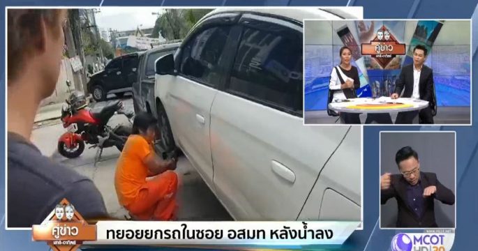ผลพวงจากเหตุฝนถล่ม กทม. และปริมณฑล วานนี้ ทำให้เกิดน้ำท่วมขังบนพื้นผิวการจราจรหลายพื้นที่ในกรุงเทพฯ เช้าวันนี้ ผู้ประสบภัยทยอยยกรถในซอยทวีมิตร อสมท หลังน้ำลง