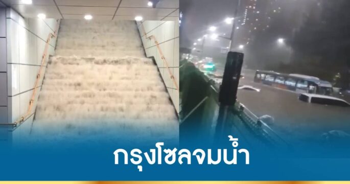 ฝนถล่มเกาหลีใต้ น้ำท่วมหนักกรุงโซล และพื้นที่อื่นๆ ทางตอนกลางของประเทศ บางจุดน้ำท่วมสูงมิดหลังคารถ และยังมีน้ำทะลักรถไฟใต้ดินด้วย