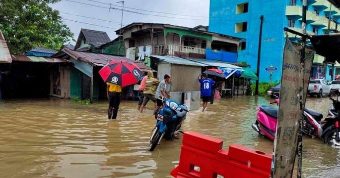 นราธิวาสฝนตกหนักเริ่มท่วมชุมชนริมฝั่งแม่น้ำสุไหงโก-ลก