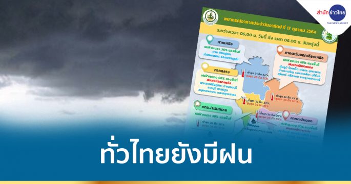 กรมอุตุฯ เตือนทั่วไทยยังมีฝน ส่วนภาคตะวันออกเฉียงเหนือตอนล่าง ภาคกลางตอนล่าง ภาคใต้ตอนบน ภาคตะวันออก ระวังฝนตกหนักบางแห่ง อาจเกิดน้ำท่วมฉับพลัน-น้ำป่าไหลหลาก