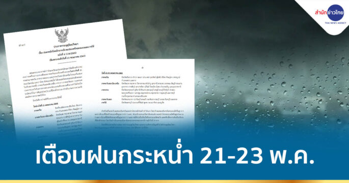 กทม. 21 พ.ค.- กรมอุตุฯ ออกประกาศ ฉบับที่ 6 มรสุมเคลื่อนเข้าไทยแล้ว เตือนทั่วไทยเฝ้าระวังฝนกระหน่ำ 21-23 พ.ค.นี้ อาจทำให้เกิดน้ำท่วมฉับพลัน-น้ำป่าไหลหลาก กรมอุตุนิยมวิทยา ออกประกาศฉบับที่ 6 ฝนตกหนักถึงหนักมากบริเวณประเทศไทยตอนบนและภาคใต้ มีผลกระทบถึงวันที่ 23 พฤษภาคม 2565 หย่อมความกดอากาศต่ำกำลังแรงบริเวณประเทศเมียนมา ได้เคลื่อนเข้าปกคลุมบริเวณจังหวัดแม่ฮ่องสอนของประเทศไทยแล้ว คาดว่าจะเคลื่อนผ่านภาคเหนือและภาคตะวันออกเฉียงเหนือตอนบนในช่วงวันที่ 21-23 พฤษภาคม 2565 ประกอบกับมีร่องมรสุมพาดผ่านภาคเหนือ ภาคกลางตอนบน และภาคตะวันออกเฉียงเหนือ ในขณะที่มรสุมตะวันตกเฉียงใต้กำลังแรงพัดปกคลุมประเทศไทย ทะเลอันดามัน และอ่าวไทย ลักษณะเช่นนี้ทำให้ประเทศไทยตอนบนมีฝนฟ้าคะนองกับมีลมแรง และมีฝนตกหนักถึงหนักมากบางพื้นที่ในบริเวณภาคเหนือ ภาคตะวันออกเฉียงเหนือ ภาคกลาง ภาคตะวันออก กรุงเทพมหานครและปริมณฑล รวมทั้งภาคใต้ตอนบน ขอให้ประชาชนระวังอันตรายจากฝนตกหนักและฝนที่ตกสะสมซึ่งอาจทำให้เกิดน้ำท่วมฉับพลันและน้ำป่าไหลหลาก และเพิ่มความระมัดระวังในการสัญจรผ่านบริเวณที่มีฝนฟ้าคะนอง สำหรับเกษตรกรควรเตรียมการป้องกันและระวังความเสียหายที่จะเกิดต่อผลผลิตทางการเกษตรไว้ด้วย จังหวัดที่คาดว่าจะได้รับผลกระทบ มีดังนี้ วันที่ 21 พฤษภาคม 2565 ภาคเหนือ: จังหวัดแม่ฮ่องสอน เชียงใหม่ เชียงราย ลำพูน ลำปาง พะเยา […]