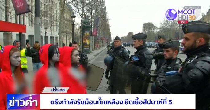ตำรวจปราบจลาจลฝรั่งเศสตรึงกำลังเหนียวแน่นทั่วกรุงปารีส เพื่อรับมือกับการประท้วงของกลุ่มเสื้อกั๊กเหลือง ซึ่งยืดเยื้อมา 5 สัปดาห์แล้ว