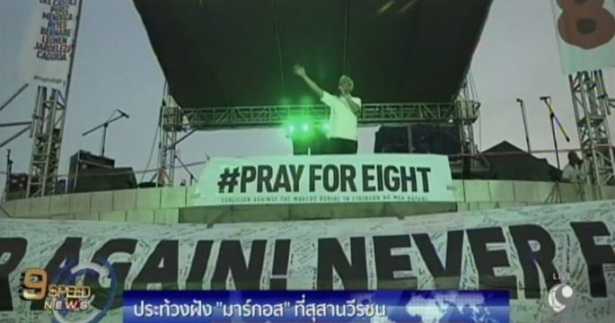 ชาวฟิลิปปินส์ 500 คน ชุมนุมกลางกรุงมะนิลา สวดมนต์และร้องเพลงต้านแผนการจะให้ฝังศพอดีตผู้นำเผด็จการ เฟอร์ดินานด์ มากอส ในสุสานวีรชนของชาติ