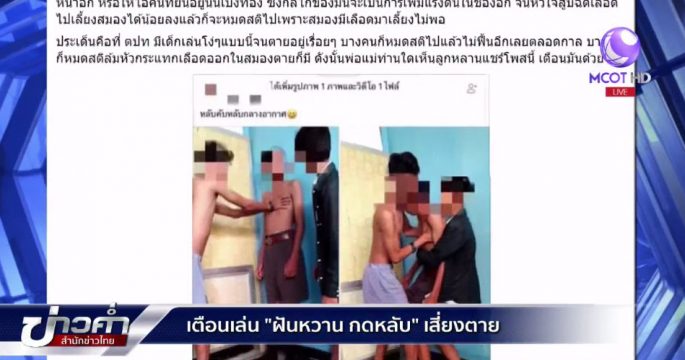กรมการแพทย์ เตือนวัยรุ่นเล่น “ฝันหวานกดหลับ”เสี่ยงตาย อันตรายถึงชีวิต ชี้ผู้ปกครองคอยดูแลเข้มงวด พร้อมงดเผยแพร่ทางสื่อออนไลน์ เพื่อไม่ให้เกิดพฤติกรรมลอกเลียนแบบ