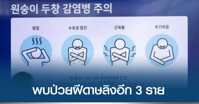 เกาหลีใต้แจ้งยืนยันพบผู้ป่วยโรคฝีดาษวานรหรือฝีดาษลิงอีก 3 คน ทำให้ยอดผู้ป่วยทั้งประเทศรวมเป็น 16 คนแล้ว โดยสันนิษฐานว่าผู้ป่วยใหม่ 3 ราย อาจติดเชื้อในประเทศ