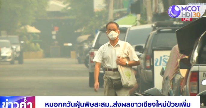 หลายจังหวัดทางภาคเหนือ รวมทั้งเชียงใหม่ เจอหมอกควันปกคลุมและฝุ่นพิษเกินมาตรฐานสะสมมาร่วม 2 สัปดาห์แล้ว ส่งผลผู้คนล้มป่วยเพิ่มมากขึ้น เฉพาะช่วง 1 สัปดาห์ที่ผ่านมา มีผู้ป่วยกว่า 8,000 คนแล้ว