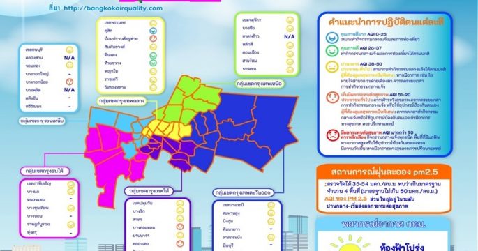 35พื้นที่ กทม.ค่าฝุ่นPM2.5เกิน ควรสวมหน้ากากอนามัย
