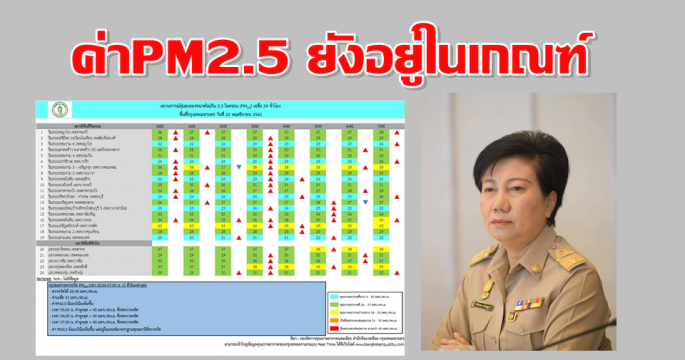ค่าฝุ่น PM2.5 ในพื้นที่ กทม.วันนี้ ค่าเกินมาตรฐาน อยู่ในระดับเริ่มมีผลกระทบต่อสุขภาพ จำนวน 23 เขต