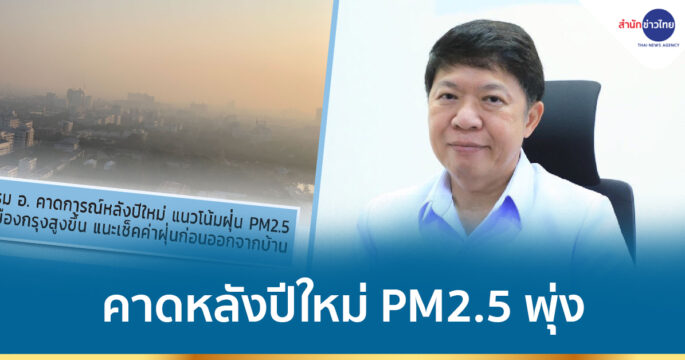 กรมอนามัย คาดการณ์หลังปีใหม่ แนวโน้มฝุ่น PM2.5 เมืองกรุงสูงขึ้น แนะเช็กค่าฝุ่นก่อนออกจากบ้าน สวมหน้ากากป้องกัน ส่วนผู้ที่มีโรคประจำตัวควรเตรียมยาและอุปกรณ์ที่จำเป็นด้วย