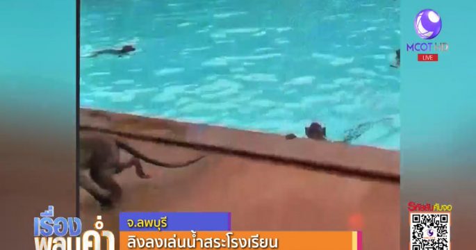 ฝูงลิงนับร้อย เฝ้ารอโรงเรียนเลิก ก่อนพากันกระโดดเล่นน้ำในสระอย่างสบายใจ นักการภารโรงเผยไล่แล้วแต่ลิงไม่ยอมไป