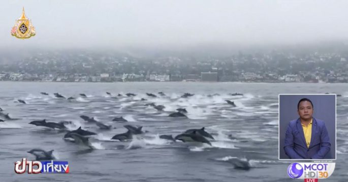 ภาพน่าตื่นตา โลมาฝูงใหญ่ที่มีผู้พบเห็นและบันทึกภาพเอาไว้ที่นอกชายฝั่งลากูนา บีช ทางภาคใต้ของรัฐแคลิฟอร์เนีย
