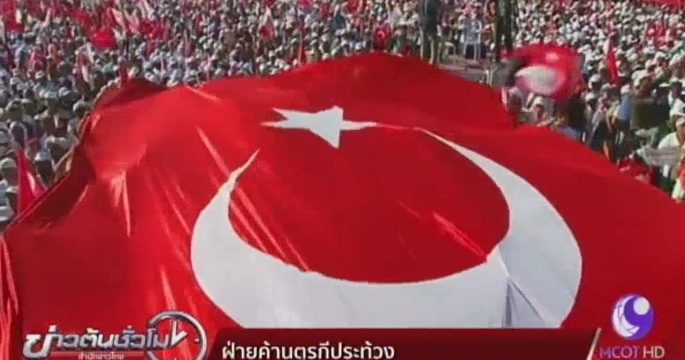 ผู้ชุมนุมของฝ่ายค้านในตุรกีออกมาเดินขบวนในนครอิสตันบูล เพื่อประท้วงต่อต้านรัฐบาลกรณีเดินหน้าปราบปรามกลุ่มต่อต้านอย่างต่อเนื่อง