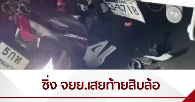 นุ่มแกร็บฟู้ดขี่ จยย.พุ่งฝ่าแผงกั้นเสยท้ายสิบล้อ ร่างกระเด็นดับ