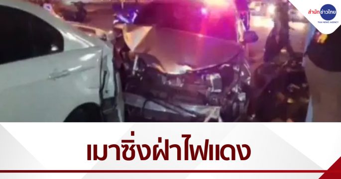 หนุ่มเมาซิ่งเก๋งฝ่าไฟแดงชนเก๋งอีกคันกระเด็นฟาด จยย.ริมทางเจ็บ