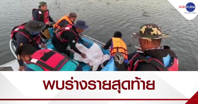 พบแล้วร่างผู้สูญหายรายสุดท้ายจากเหตุเรือล่มในอ่างเก็บน้ำคลองสียัด จ.ฉะเชิงเทรา โดยพบอยู่ห่างจากจุดเรือจมประมาณ 100 เมตร
