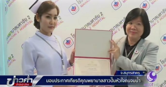 เมื่อ 3 วันที่ผ่านมามีการเผยแพร่คลิปพยาบาลสาวที่ไปท่องเที่ยวที่ชลบุรี แต่ประสบเหตุมีคนจมน้ำ จึงรีบวิ่งเข้าไปช่วยชีวิต ทำให้ผู้ประสบเหตุรอดชีวิตอย่างปาฏิหาริย์ โดยวันนี้โรงพยาบาลต้นสังกัดได้มอบประกาศเกียรติคุณให้พยาบาลสาวคนนี้แล้ว