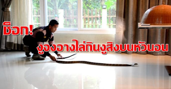 ช็อก! งูจงอางยาว 4 เมตร ไล่กินงูสิงบนหัวนอน