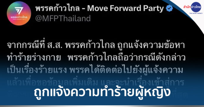 พรรคก้าวไกลทวิตข้อความรับส.ส.กทม.เขตทวีวัฒนาของพรรคถูกแจ้งความข้อหาทำร้ายร่างกายผู้หญิง ขอข้อมูลเพิ่มจากคู่ความ เตรียมชงเรื่องให้กรรมการวินัยพรรคพิจารณาเร็วที่สุด