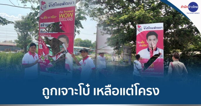 “วราวุธ” โวย ป้ายผู้สมัคร-ป้ายพรรคชาติไทยพัฒนา ถูกเจาะโบ๋ เหลือแต่โครง จี้ มาสู้ด้วยนโยบายดีกว่า