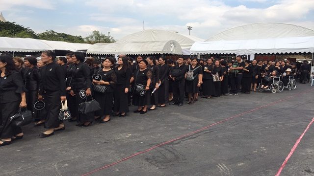 พสกนิกรจำนวนมากจากทั่วทุกสารทิศ เดินทางเข้าคิวกราบถวายบังคมพระบรมศพ ด้วยสำนึกในพระมหากรุณาธิคุณอันหาที่สุดมิได้