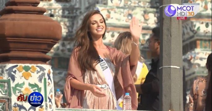 กองประกวดมิสยูนิเวิร์ส 2018 พา 59 สาวงามทำกิจกรรมล่องเรือชมวัดอรุณฯ สาวงามทุกคนยิ้มสู้แดดฤดูหนาวของกรุงเทพฯ อันร้อนระอุ ให้ช่างภาพสื่อมวลชนจากทั่วโลกได้เก็บภาพ