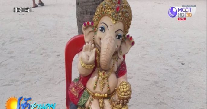 ฮือฮา! พระพิฆเนศลอยติดหาดบางแสน ชาวบ้าน-นักท่องเที่ยวแห่กราบไหว้ขอพร