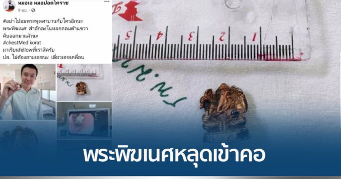 หมอโคราชช่วยชีวิตหนุ่มอมพระพิฆเนศ พูดสาบาน หลุดเข้าหลอดลม ค้างในปอด หมอคีบออก อาการปลอดภัย