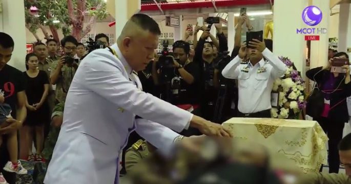 พิธีพระราชทานน้ำหลวงอาบศพ จ.อ.สมาน กุนัน หน่วยซีลนอกราชการที่เสียชีวิตระหว่างปฏิบัติภารกิจนำ 13 ชีวิตออกจากถ้ำหลวง ขณะที่ภรรยาเผยภูมิใจในสิ่งที่สามีทุ่มเทและเสียสละ