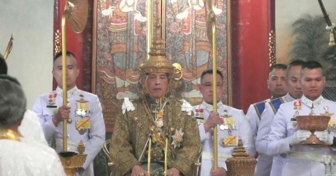 พระบาทสมเด็จพระปรเมนทรรามาธิบดีศรีสินทรมหาวชิราลงกรณ พระวชิรเกล้าเจ้าอยู่หัว ทรงรับพระมหาพิชัยมงกุฎ และเครื่องราชกกุธภัณฑ์ พระราชทานพระปฐมบรมราชโองการ