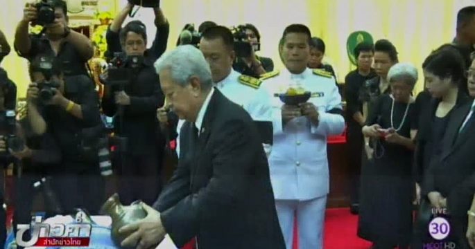 สมเด็จพระเจ้าอยู่หัว พระราชทานไฟหลวงในพิธีถวายพระเพลิงพระบรมศพ ณ พระเมรุมาศจำลอง