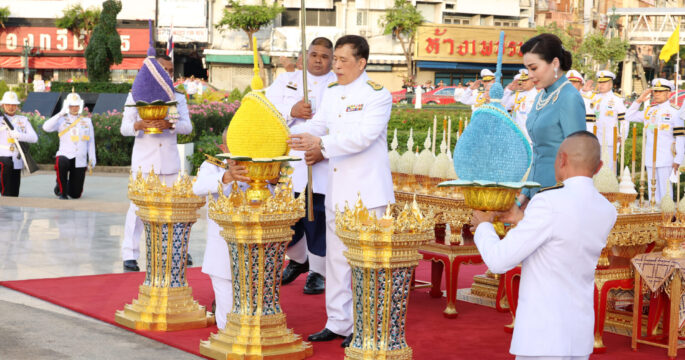 พระบาทสมเด็จพระเจ้าอยู่หัว และสมเด็จพระนางเจ้า ฯ พระบรมราชินี เสด็จฯ ทรงวางพุ่มดอกไม้ ถวายราชสักการะพระบรมราชานุสาวรีย์สมเด็จพระเจ้าตากสินมหาราช